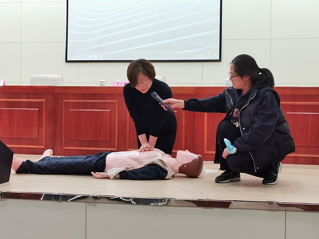 千佛山醫院急救專家周秀花,以生動的語言、真實的臨床案例,結合日常生活和工作,分別就急救重要性、基礎知識、心肺復蘇術、氣道異物、燒燙傷、骨折的緊急處理進行了講解,尤其對如何在第一時間采取正確、有效的應急措施,最大限度地在救護人員到來之前協助挽救生命作了詳盡講解。千佛山醫院救護專家胡秀麗,通過人體模型進行現場演示教學,指導職工進行操作演練,手把手教學,面對面授課,讓大家真正掌握了心肺復蘇的救護要領。